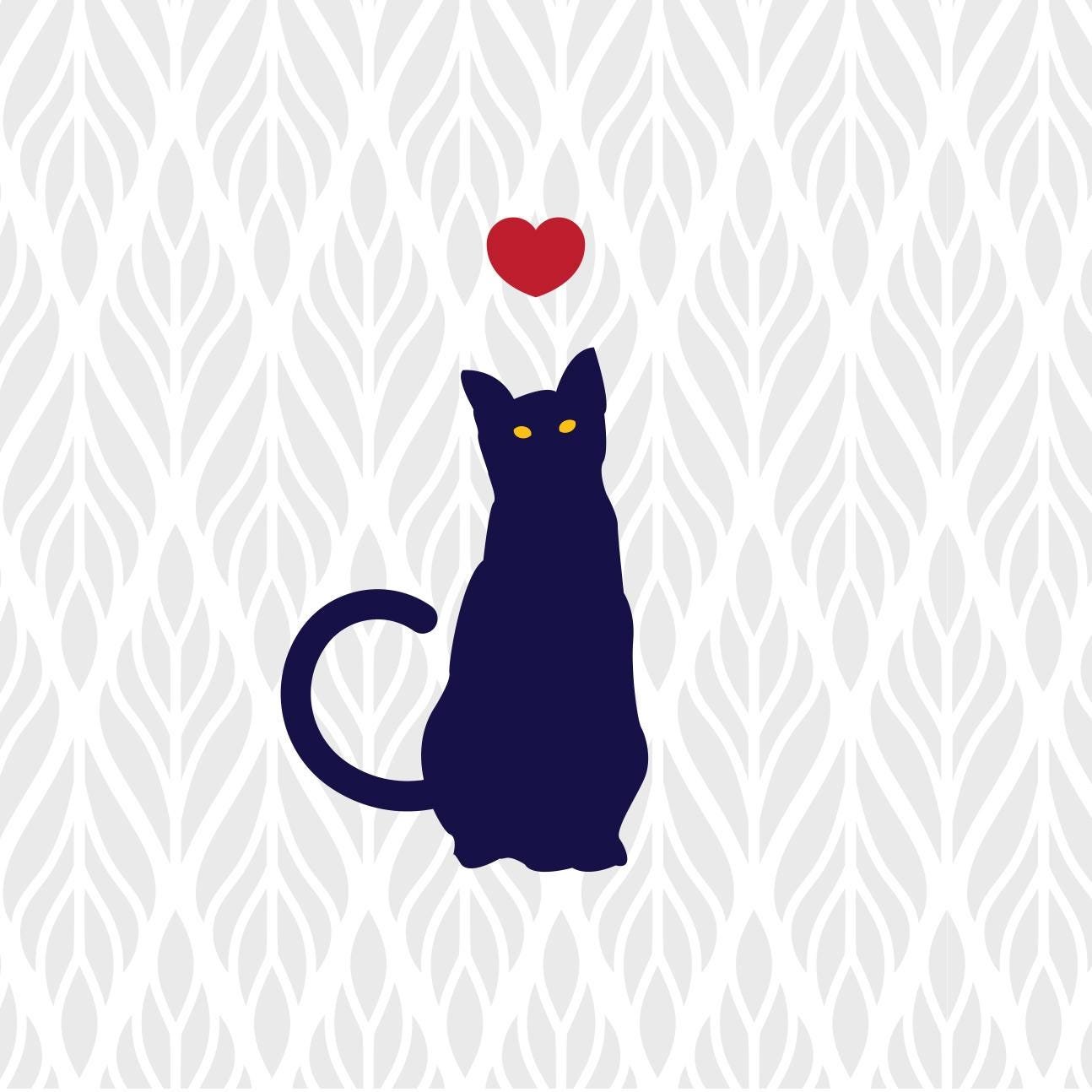 This charming 11 oz white ceramic mug features a minimalist design of a cute black cat on a brocade background pattern with striking yellow eyes sitting calmly and gazing upward. Above the cat, a small red heart floats, adding a touch of warmth and affection to the design. The clean, simple artwork makes it perfect for cat lovers who appreciate a touch of whimsy. This mug is ideal for sipping coffee, tea, or any beverage. It is microwave and dishwasher-safe, making it as practical as adorable. A perfect gift for cat enthusiasts or anyone who loves a cozy cup with a bit of personality!